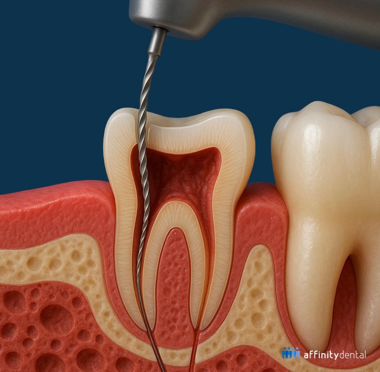 Tratamentul endodontic este o procedură stomatologică prin care se îndepărtează țesutul pulpar infectat sau inflamat din interiorul dintelui. După curățarea canalelor radiculare, acestea sunt dezinfectate și sigilate pentru a preveni reapariția infecției. Scopul principal este păstrarea dintelui natural pe arcadă și eliminarea durerii sau a riscului de complicații.